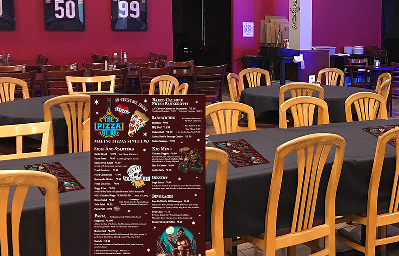 Featured below are digital illustrations I created for various applications throughout the restaurant. They wanted colorful and fun imagery that had an family friendly, yet edgy feel.